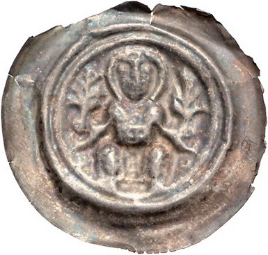 Los-Nummer: Auktion 51 - 1441 Altdeutsche Münzen und Medaillen Quedlinburg-Gera, Münzstätte der Abtei . Jahrhundert. Agnes von Meißen bis Betradis II. Brakteat. 0,66 g. Sitzende Äbtissin, in jeder Hand einen Weidenzweig, unten je ein Ringel. Mehl 325, Schmidt u. Knab 53, Hausmann GA 44 , Slg. Bonhoff 950, Slg. Bahrfeldt 1828. Randfehler, sehr schön Schätzpreis: 200,- Zuschlag: 290,- |