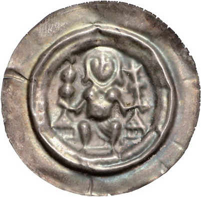 Los-Nummer: Auktion 51 - 1442 Altdeutsche Münzen und Medaillen Quedlinburg-Gera, Münzstätte der Abtei . Jahrhundert. Agnes von Meißen bis Betradis II. Brakteat. 0,77 g. Sitzende Äbtissin, verschleiert und mit Haarlocke, sitzt zwischen zwei Gebäuden mit spitzen Dächern, in der Rechten einen Doppelreichsapfel, in der Linken Kreuzstab mit aufgesetzter Lilie. Mehl 326, Schmidt u. Knab 19, Hausmann GA 47 , Slg. Hoecke 3009. Sehr schön Schätzpreis: 250,- Zuschlag: 675,- |