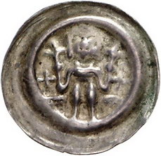Los-Nummer: Auktion 51 - 250 Altdeutsche Münzen und Medaillen Brandenburg-Preußen Askanisches Haus bis 1300, Brakteat. 0,74 g. Stehender Markgraf mit zwei Lilienstäben zwischen Mauern und zwei Kreuzen. Bahrfeldt 504. Sehr schön Schätzpreis: 100,- Zuschlag: 320,- |