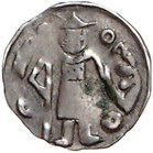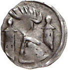 Los-Nummer: Auktion 51 - 254 Altdeutsche Münzen und Medaillen Brandenburg-Preußen Heinrich III. 1319-1320, Pfennig, Spandau. 0,75 g. Markgraf mit Fahne und Schild / Helm über Adlerschild zwischen zwei Türmen. Bahrfeldt 583, Dannenberg 169. Sehr schön Schätzpreis: 50,- Zuschlag: 75,- |