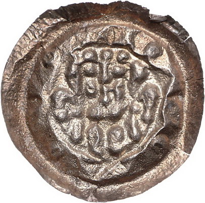 Los-Nummer: Auktion 51 - 1446 Altdeutsche Münzen und Medaillen Quedlinburg-Weida, Münzstätte der Abtei Die Vögte von Weida. Ende 13. bis Mitte 14. Jahrhundert, Brakteat. 0,62 g. Sitzender Herrscher mit zwei halben Lilien, auf dem Rand N V O N V O. Schmidt u. Knab 67, Hausmann W 21. Randfehler, sehr schön Schätzpreis: 150,- Zuschlag: 360,- |