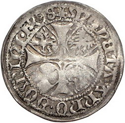 Los-Nummer: Auktion 51 - 279 Altdeutsche Münzen und Medaillen Brandenburg-Preußen Johann Cicero 1486-1499, Groschen 1498, Berlin. Ohne Angabe der Münzstätte. Bahrfeldt 51 c/d, Levinson 375 a. Gewellt, sehr schön Schätzpreis: 200,- Zuschlag: 390,- |