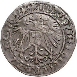 Los-Nummer: Auktion 51 - 283 Altdeutsche Münzen und Medaillen Brandenburg-Preußen Joachim I. und Albrecht 1499-1514, Groschen o.J. (1505/6), Berlin. Münzzeichen Stern. Bahrfeldt 179 h. Sehr schön Schätzpreis: 50,- Zuschlag: 80,- |