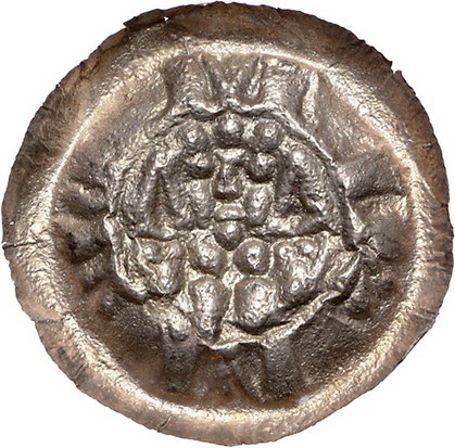 Los-Nummer: Auktion 51 - 1447 Altdeutsche Münzen und Medaillen Quedlinburg-Weida, Münzstätte der Abtei Die Vögte von Weida. Ende 13. bis Mitte 14. Jahrhundert, Brakteat. 0,68 g. Sitzender Herrscher mit zwei Lanzen, auf dem Rand M-N-M-N. Schmidt u. Knab 70, Slg. Hohenstaufen 871, Hausmann W 32. Sehr schön Schätzpreis: 175,- Zuschlag: 340,- |