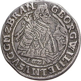 Los-Nummer: Auktion 51 - 335 Altdeutsche Münzen und Medaillen Brandenburg-Preußen Georg Wilhelm 1619-1640, Ort 1621, Königsberg. Olding 37 d, Slg. Marienburg 1386. Sehr schön Schätzpreis: 100,- Zuschlag: 160,- |