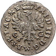 Los-Nummer: Auktion 51 - 385 Altdeutsche Münzen und Medaillen Brandenburg-Preußen Friedrich III. 1688-1701, 2 Gröscher 1700 CG, Königsberg. v. Schrötter 841. Sehr schön Schätzpreis: 50,- Zuschlag: 110,- |