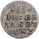 Los-Nummer: Auktion 51 - 393 Altdeutsche Münzen und Medaillen Brandenburg-Preußen Friedrich I. 1701-1713, 2 Pfennig 1703 HFH, Magdeburg. v. Schrötter 311. Schön - sehr schön Schätzpreis: 50,- Zuschlag: unverkauft |