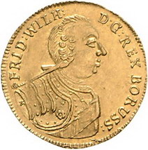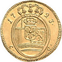 Los-Nummer: Auktion 51 - 399 Altdeutsche Münzen und Medaillen Brandenburg-Preußen Friedrich Wilhelm I. 1713-1740, Dukat 1723 CG, Königsberg. Geharnischtes Brustbild mit Zopf nach rechts / Gekröntes Wappen mit aufgesetztem Mittelschild. v. Schrötter 122-24, Friedberg 2348. GOLD. Vorzüglich + Schätzpreis: 2000,- Zuschlag: 2700,- |