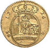 Los-Nummer: Auktion 51 - 400 Altdeutsche Münzen und Medaillen Brandenburg-Preußen Friedrich Wilhelm I. 1713-1740, 1/2 Dukat 1726 EGN, Berlin. v. Schrötter 158, Friedberg 2360. GOLD. Sehr schön + Schätzpreis: 500,- Zuschlag: 750,- |