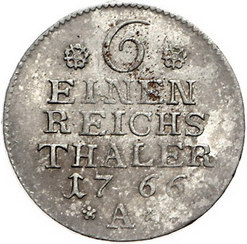 Los-Nummer: Auktion 51 - 418 Altdeutsche Münzen und Medaillen Brandenburg-Preußen Friedrich II. 1740-1786, 1/6 Taler 1766 A, Berlin. Olding 81. Fast vorzüglich Schätzpreis: 50,- Zuschlag: unverkauft |