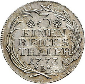 Los-Nummer: Auktion 51 - 420 Altdeutsche Münzen und Medaillen Brandenburg-Preußen Friedrich II. 1740-1786, 1/3 Taler 1773 B, Breslau. Olding 89. Justiert, vorzüglich + Schätzpreis: 50,- Zuschlag: unverkauft |