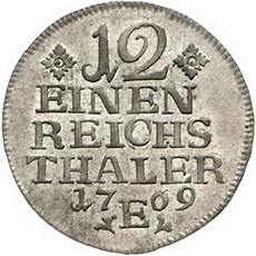 Los-Nummer: Auktion 51 - 423 Altdeutsche Münzen und Medaillen Brandenburg-Preußen Friedrich II. 1740-1786, 1/12 Taler 1769 E, Königsberg. Olding 119. Vorzüglich Schätzpreis: 50,- Zuschlag: unverkauft |