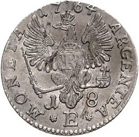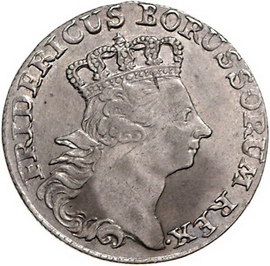 Los-Nummer: Auktion 51 - 429 Altdeutsche Münzen und Medaillen Brandenburg-Preußen Friedrich II. 1740-1786, 18 Gröscher 1764 E, Königsberg. Olding 196 a. Fast vorzüglich Schätzpreis: 90,- Zuschlag: unverkauft |
