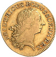 Los-Nummer: Auktion 51 - 451 Altdeutsche Münzen und Medaillen Brandenburg-Preußen Friedrich II. 1740-1786, Friedrichs d'or 1770 A, Berlin. Olding 434, Friedberg 2406. GOLD. Sehr schön - vorzüglich Schätzpreis: 900,- Zuschlag: 1250,- |