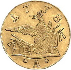 Los-Nummer: Auktion 51 - 452 Altdeutsche Münzen und Medaillen Brandenburg-Preußen Friedrich II. 1740-1786, Friedrichs d'or 1778 A, Berlin. Olding 435, Friedberg 2411. GOLD. Sehr schön + Schätzpreis: 750,- Zuschlag: 1400,- |