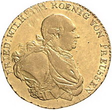 Los-Nummer: Auktion 51 - 484 Altdeutsche Münzen und Medaillen Brandenburg-Preußen Friedrich Wilhelm II. 1786-1797, Friedrichs d'or 1796 A. Jaeger 100, v. Schrötter 10, Friedberg 2417. GOLD. Vorzüglich Schätzpreis: 1000,- Zuschlag: 875,- |