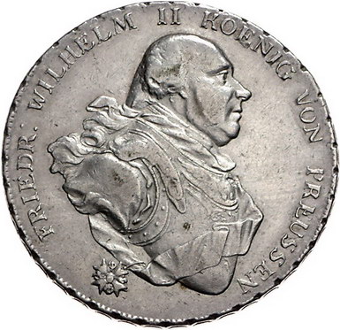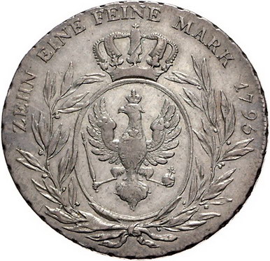 Los-Nummer: Auktion 51 - 489 Altdeutsche Münzen und Medaillen Brandenburg-Preußen Friedrich Wilhelm II. 1786-1797, Taler 1795, Berlin. Für Ansbach-Bayreuth. Jaeger 182, Davenport 2600. Sehr schön + Schätzpreis: 175,- Zuschlag: 250,- |