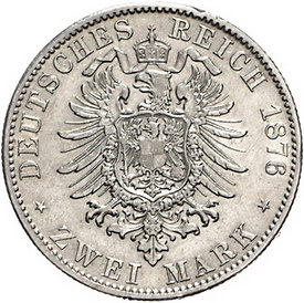 Los-Nummer: Auktion 51 - 2582 Münzen des Deutschen Kaiserreichs Bayern Ludwig II. 1864-1886, 2 Mark 1876 D. Jaeger 41. Fast vorzüglich Schätzpreis: 100,- Zuschlag: unverkauft |