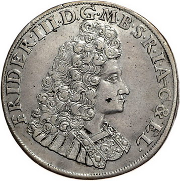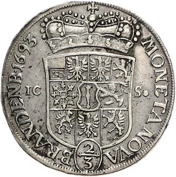 Los-Nummer: Auktion 51 - 379 Altdeutsche Münzen und Medaillen Brandenburg-Preußen Friedrich III. 1688-1701, 2/3 Taler 1693 ICS, Magdeburg. v. Schrötter 174 ff, Davenport 273. Sehr schön Schätzpreis: 100,- Zuschlag: 90,- |