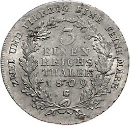 Los-Nummer: Auktion 51 - 503 Altdeutsche Münzen und Medaillen Brandenburg-Preußen Friedrich Wilhelm III. 1797-1840, 1/3 Taler 1809 G, Glatz. Jaeger 32, AKS 21. Vorzüglich Schätzpreis: 250,- Zuschlag: 260,- |