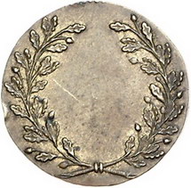 Los-Nummer: Auktion 51 - 531 Altdeutsche Münzen und Medaillen Brandenburg-Preußen Friedrich Wilhelm III. 1797-1840, Messingmarke o.J. Gekrönter Adlerschild / Zweige. Möglicherweise Probe für einen Friedrichsd'or. 22 mm. Vorzüglich Schätzpreis: 50,- Zuschlag: 100,- |