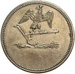 Los-Nummer: Auktion 51 - 533 Altdeutsche Münzen und Medaillen Brandenburg-Preußen Friedrich Wilhelm III. 1797-1840, Einseitige Messingmarke o.J. Adler mit Pflug. 25,5 mm. Sehr schön - vorzüglich Schätzpreis: 20,- Zuschlag: 60,- |