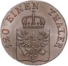 Los-Nummer: Auktion 51 - 543 Altdeutsche Münzen und Medaillen Brandenburg-Preußen Friedrich Wilhelm IV. 1840-1861, Cu 3 Pfennig 1844 D. Jaeger 48, AKS 90. Vorzüglich - Stempelglanz Schätzpreis: 50,- Zuschlag: 80,- |