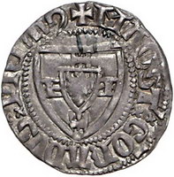 Los-Nummer: Auktion 51 - 722 Altdeutsche Münzen und Medaillen Deutscher Orden Conrad Zöllner von Rothenstein 1382-1390, Schilling. Hochmeisterschild / Ordensschild. Neumann 6, Slg. Marienburg 157/58, Voßberg 144. Äußerst selten. Vorzüglich Schätzpreis: 500,- Zuschlag: 810,- |