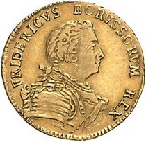 Los-Nummer: Auktion 51 - 450 Altdeutsche Münzen und Medaillen Brandenburg-Preußen Friedrich II. 1740-1786, 1/2 Friedrichs d'or 1750 A, Berlin. Olding 405 a 1, Friedberg 2387. GOLD. Sehr schön Schätzpreis: 500,- Zuschlag: 660,- |