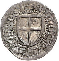 Los-Nummer: Auktion 51 - 729 Altdeutsche Münzen und Medaillen Deutscher Orden Heinrich Reuss von Plauen 1467-1470, Als Statthalter. Schilling. Mit Wappen in der Umschrift der Rückseite. Neumann 26 b. Sehr schön / fast sehr schön Schätzpreis: 75,- Zuschlag: 110,- |