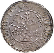 Los-Nummer: Auktion 51 - 1043 Altdeutsche Münzen und Medaillen Mainz, Erzbistum Albrecht von Brandenburg 1514-1545, Groschen 1515. Gevierter Schild / Wappen von Bayern, Köln und Trier. Slg. Walther 184. Schöne Patina. Sehr schön - vorzüglich Schätzpreis: 250,- Zuschlag: 330,- |