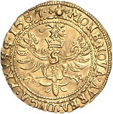 Los-Nummer: Auktion 51 - 1426 Altdeutsche Münzen und Medaillen Preußen, Herzogtum (Ostpreußen) Georg Friedrich als Administrator 1578-1603, Dukat 1587, Königsberg. Stehender Herrscher / Adler mit S auf der Brust. Neumann 54, v. Schrötter 1242 ff, Friedberg 315. GOLD. Vorzüglich Schätzpreis: 1000,- Zuschlag: Z |