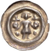 Los-Nummer: Auktion 51 - 1499 Altdeutsche Münzen und Medaillen Sachsen-Wittenberg Albrecht II. 1260-1298, Brakteat. 0,45 g. Stehender Herzog hält zwei Reichsäpfel. Thormann 91, Slg. Bahrfeldt 1168, Fd. Aschersleben 192 , Fd. Wolkenberg 13, Fd. Starzeddel 137, Fd. Mochow 73, Bahrfeldt (Niederlausitz) 200, Bahrfeldt (Brandenburg) 425. Sehr schön Schätzpreis: 125,- Zuschlag: 200,- |