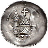 Los-Nummer: Auktion 51 - 1825 Altdeutsche Münzen und Medaillen Trier, Erzbistum Domkapitel für Folmar von Blieskastel 1183-1189, Pfennig. 0,76 g. Erzbischof von vorn, Kopf leicht nach links gewandt, die Rechte segnend, die Linke hält den Krummstab / Chorpartie des Trierer Doms. Weiller 144. Prägeschwäche, sehr schön Schätzpreis: 500,- Zuschlag: 575,- |