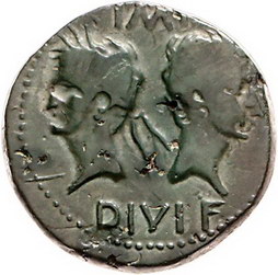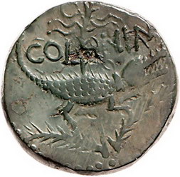 Los-Nummer: Auktion 51 - 12 Kelten Gallien Nemausus, As 9-3 v. Chr. 13,09 g. IMP / DIVI F Kopf des Agrippa nach links und Kopf des Augustus nach rechts / COL-NEM An Palme gekettetes Krokodil. RIC 155. Sehr schön Schätzpreis: 100,- Zuschlag: 115,- |
