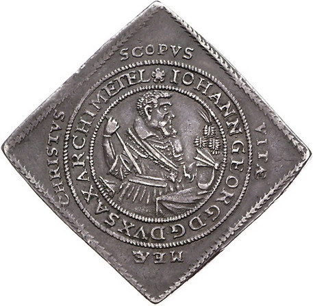 Los-Nummer: Auktion 51 - 1549 Altdeutsche Münzen und Medaillen Sachsen-Albertinische Linie Johann Georg I. 1615-1656, Dicktalerklippe 1614. Zur Taufe des Prinzen August. Geharnischtes Hüftbild mit Kommandostab nach rechts vor offenem Turnierhelm / Gekreuzte Schwerter in Blumenkranz. Clauss/Kahnt 77, Slg. Merseburger 2296, Schnee 801, Davenport -. Sehr schön - vorzüglich Schätzpreis: 1250,- Zuschlag: unverkauft |