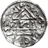 Los-Nummer: Auktion 51 - 1458 Altdeutsche Münzen und Medaillen Regensburg-herzogliche Münzstätte Heinrich IV. der Heilige als Herzog 995-1002, Pfennig. 1,11 g. Kirche mit Münzmeisternamen / Kreuz mit zwei Kugeln, Ringel und Keil. Entstellte Umschriften. Hahn 25 var, Dannenberg 1071. Gewellt, sehr schön Schätzpreis: 100,- Zuschlag: 100,- |