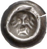 Los-Nummer: Auktion 51 - 998 Altdeutsche Münzen und Medaillen Löwenstein-Grafschaft Wertheim Anonyme Prägungen, Hohlpfennig. 0,31 g. Nach links blickender Adler mit ausgebreiteten Schwingen auf Helm. Wibel 31, Streber 10, Buchenau 30. Schrötlingsriss, sehr schön Schätzpreis: 300,- Zuschlag: 270,- |