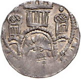 Los-Nummer: Auktion 51 - 616 Altdeutsche Münzen und Medaillen Braunschweig-Altes Haus Braunschweig Albrecht II. der Fette 1286-1318, Pfennig auf westfälischen Schlag, Göttingen. 1,00 g. Hüftbild von vorn, in der Rechten Büffelschädel, in der Linken Lilienzepter / Dreitürmiges Torgebäude, im Torbogen ein Löwenkopf von vorn. Welter zu 277, Fiala zu 432. Prägeschwäche, vorzüglich Schätzpreis: 750,- Zuschlag: 825,- |