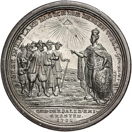 Los-Nummer: Auktion 51 - 406 Altdeutsche Münzen und Medaillen Brandenburg-Preußen Friedrich Wilhelm I. 1713-1740, Medaille 1732, von P.P. Werner. Auf die Aufnahme der Salzburger Emigranten. Brustbild nach rechts / Borussia empfängt die Emigranten. Brockmann 554 , Roll 13, Slg. Henckel 1361, Slg. Pniower 206. 43,5 mm, 28,80 g. Vorzüglich Schätzpreis: 400,- Zuschlag: 340,- |