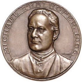 Los-Nummer: Auktion 51 - 1604 Altdeutsche Münzen und Medaillen Sachsen-Dresden, Stadt Medaillen von Friedrich Wilhelm Hörnlein, Bronzemedaille 1906. Auf den Stadtpfarrer und Ehrenbürger von Schrobenhausen im Kreis Neuburg, Michael Thalhofer (1855-1929). Brustbild leicht nach links gewandt / Wappen. Arnold - vergl. 13. 28 mm. Vorzüglich + Schätzpreis: 200,- Zuschlag: 260,- |