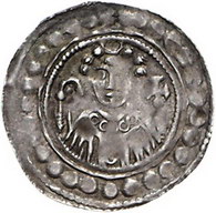 Los-Nummer: Auktion 51 - 1036 Altdeutsche Münzen und Medaillen Mainz, Erzbistum Adalbert I. von Saarbrücken 1111-1137, Pfennig, Fritzlar. 0,87 g. In Perlkreis tonsuriertes Brustbild mit Krumm- und Kreuzstab von vorn / In Perlkreis Kreuz, in den Winkeln je eine Kugel. Slg. Walther -, Slg. Bonhoff 1436 , Fund Aua Nr. 12. Sehr schön + Schätzpreis: 300,- Zuschlag: 440,- |
