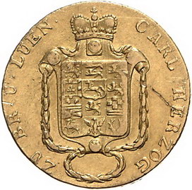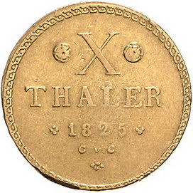 Los-Nummer: Auktion 51 - 655 Altdeutsche Münzen und Medaillen Braunschweig-Wolfenbüttel Karl 1815-1830, 10 Taler 1825 CvC. Jaeger 316, AKS 47, Friedberg 738, Divo/Schramm 57. GOLD. Prüfspur am Rand, sehr schön Schätzpreis: 400,- Zuschlag: 600,- |