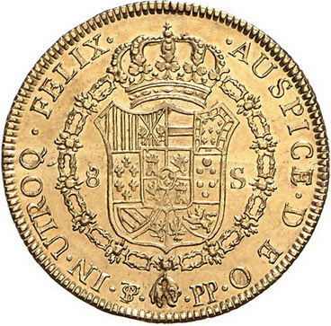 Los-Nummer: Auktion 51 - 2913 Ausländische Münzen und Medaillen Bolivien Carlos IV. 1788-1808, 8 Escudos 1797 PP, Potosi. Calicó/Trigo 91, Friedberg 14. GOLD. Vorzüglich / vorzüglich + Schätzpreis: 1500,- Zuschlag: unverkauft |