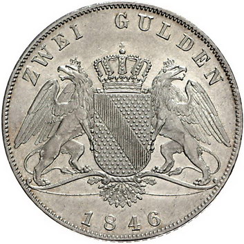 Los-Nummer: Auktion 51 - 79 Altdeutsche Münzen und Medaillen Baden-Durlach Leopold 1830-1852, Doppelgulden 1846. Jaeger 63, Thun 27, AKS 91, Kahnt 22. Vorzüglich + Schätzpreis: 125,- Zuschlag: 130,- |