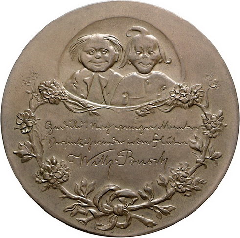 Los-Nummer: Auktion 51 - 2351 Medaillen Münchner Medailleure Goetz, Karl Bronzemedaille 1907. Auf den 75. Geburtstag von Wilhelm Busch. Brustbild nach links / Max und Moritz über Schrifttafel. Kienast 38. 65 mm. Vorzüglich Schätzpreis: 150,- Zuschlag: 150,- |
