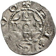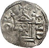 Los-Nummer: Auktion 51 - 38 Altdeutsche Münzen und Medaillen Andernach, königliche und bischöfliche Münzstätte Erzbischof Pilgrim 1021-1036 und Kaiser Konrad II. 1027-1039, Pfennig. 0,96 g. END-EOR Kirche mit Kreuz / +HM///VO Kreuzförmig angeordneter Name. Hävernick 728 c, Dannenberg 451. Prägeschwäche, vorzüglich Schätzpreis: 75,- Zuschlag: 130,- |