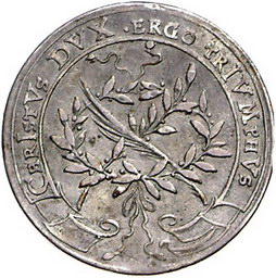 Los-Nummer: Auktion 51 - 3928 Ausländische Münzen und Medaillen Schweden Gustav II. Adolf 1611-1632, Schraubmedaille 1632. Auf seinen Tod. Belorbeertes Brustbild nach rechts / Palmzweig und Lorbeerzweige. Innen: Miniaturölgemälde eines jungen Mannes (beschädigt). 27 mm. Sehr schön Schätzpreis: 150,- Zuschlag: 340,- |